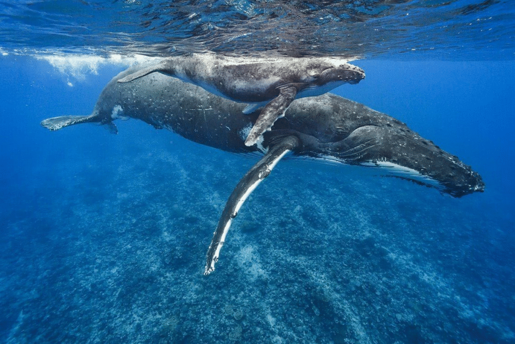 -어린 고래를 데리고 있는 어미 고래는 신경질적으로 되어 있기도 합니다. 아기 고래를 쫓는 행위는 절대 하지 마세요.